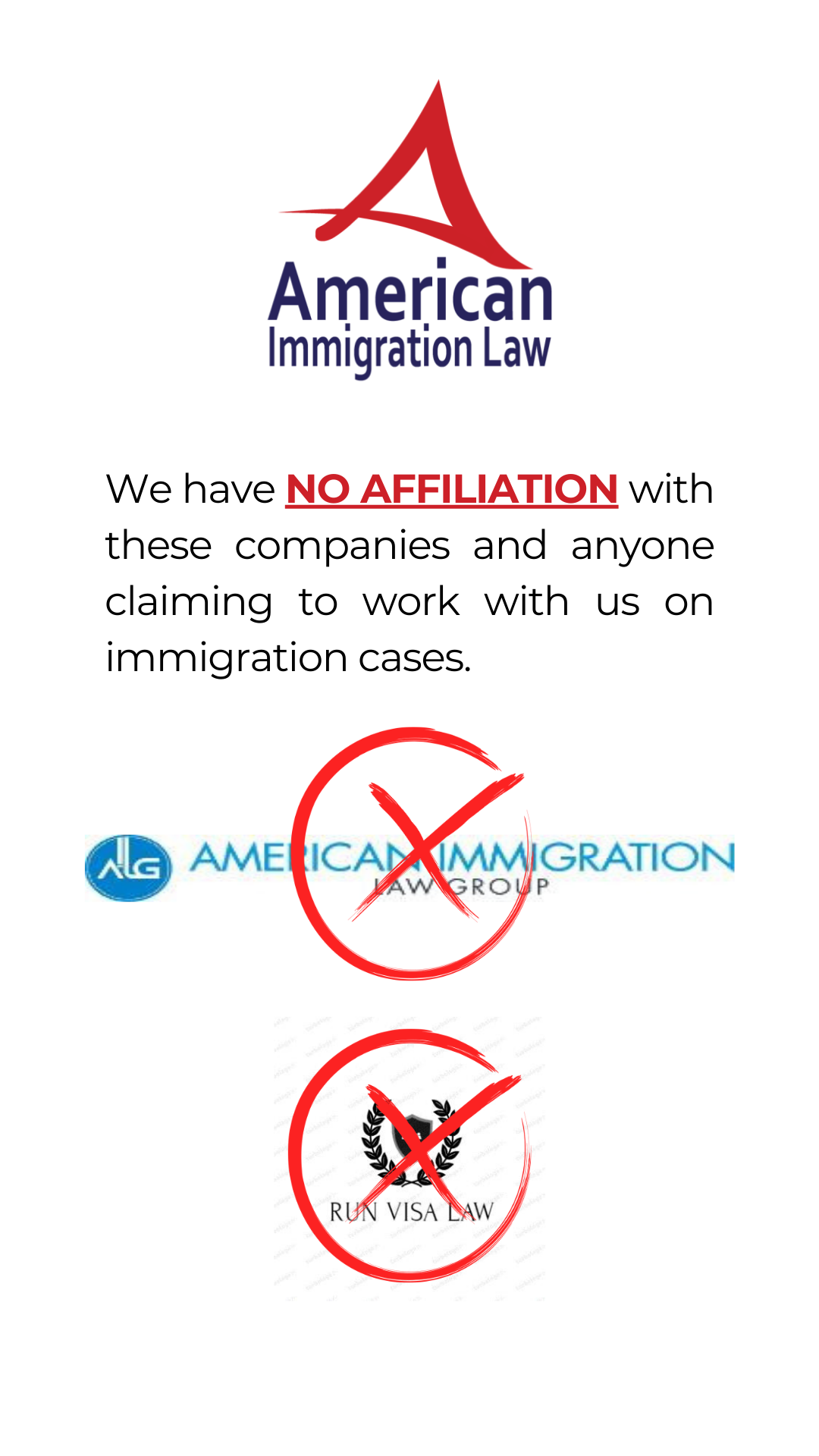 At American Immigration Law, we take pride in our work and approach every case with passion and dedication, which is why we take such a strong stance on all affiliation claims with our company.